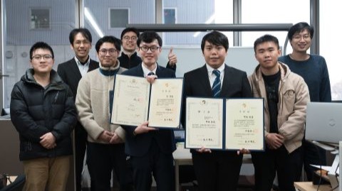 甲崎さんが博士課程、李さんが修士課程を卒業しました。おめでとうございます。